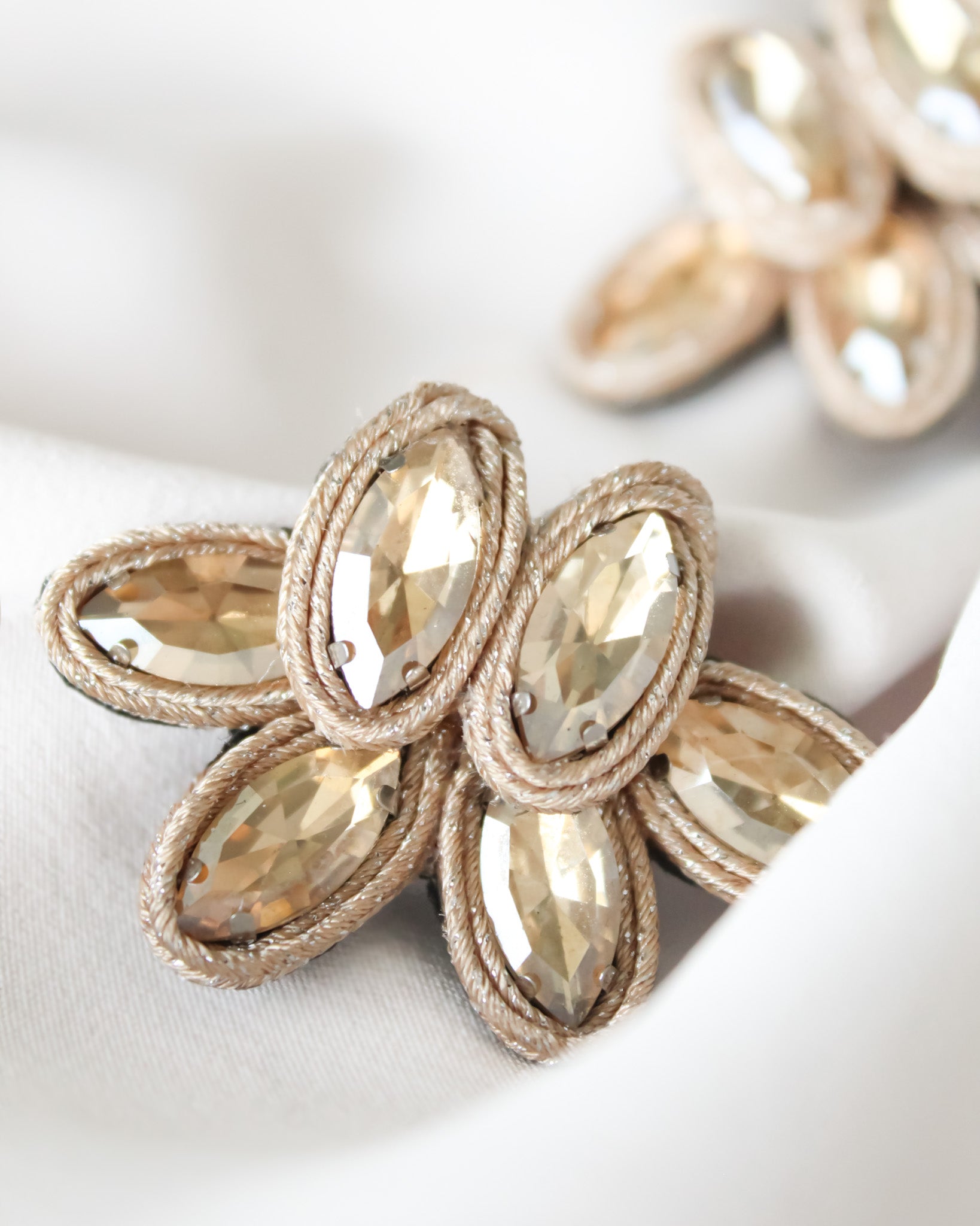 Cada material esta elegido para crear una pieza única y auténtica, hecha cuidadosamente a mano con hilos y piezas de bisutería.