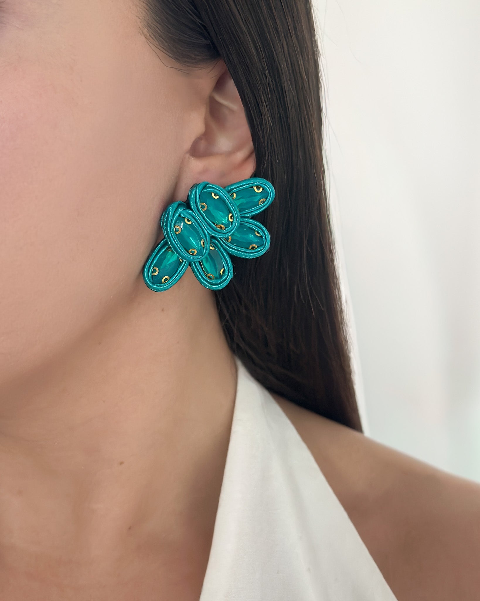 Te recomendamos fijar bien tu maquillaje antes de poner tus aros. Sus hilos podrían mancharse.