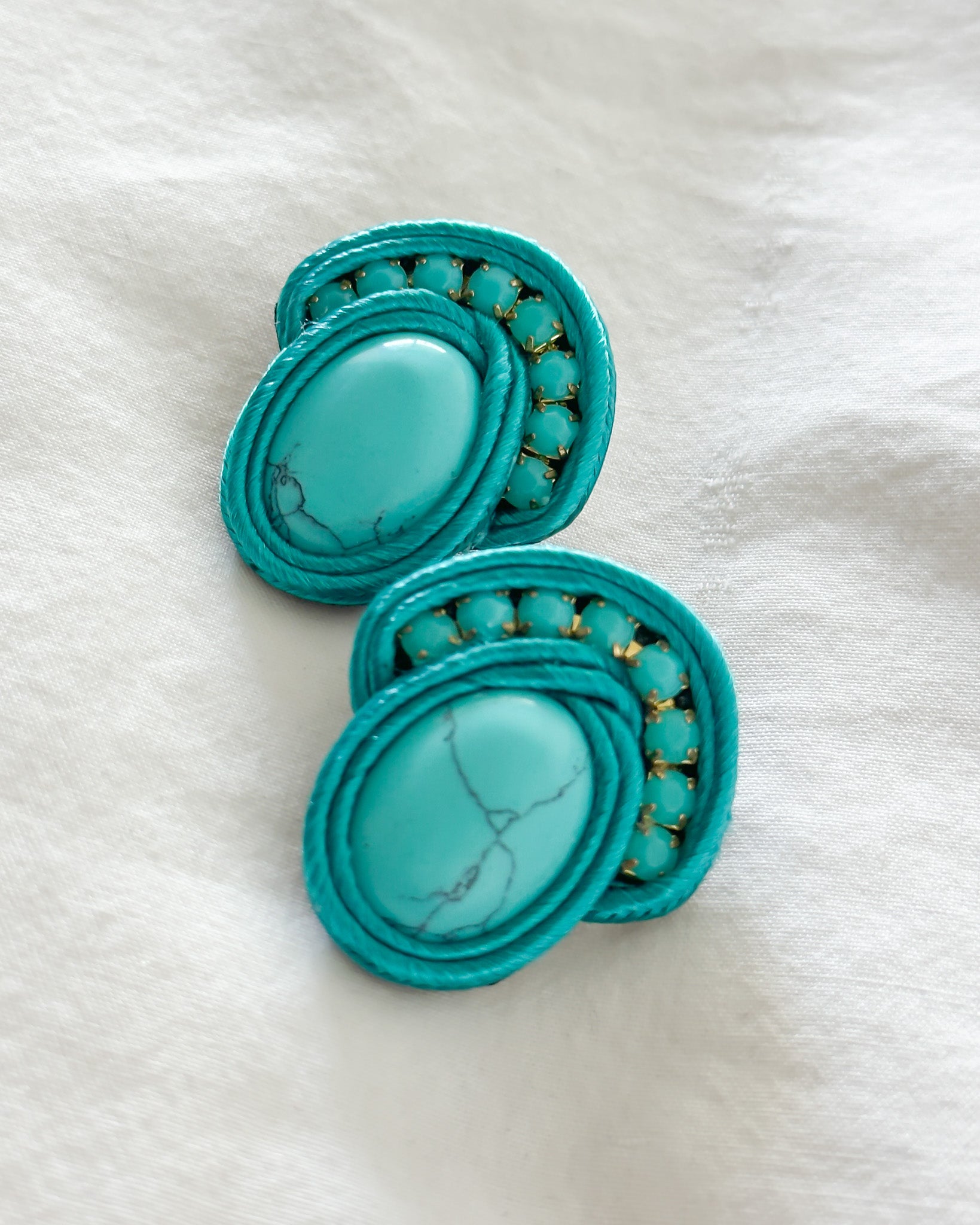 Cada material esta elegido para crear una pieza única y auténtica, hecha cuidadosamente a mano con hilos, piedras reconstituidas y piezas de bisutería.
